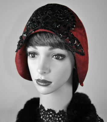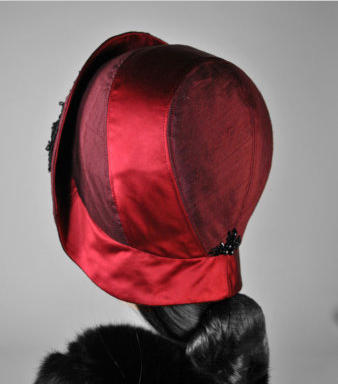 Late 20's burgundy silk and red satin "helmut" with black