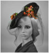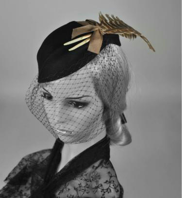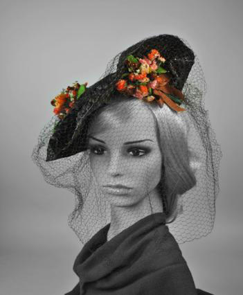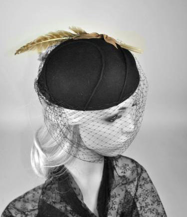 a bow. fine black veiling. Approx, 22 1/2 inches. Vintage hat.