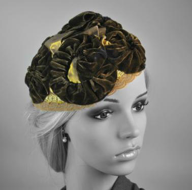 brown velvet ribbon spirals and brown velvet bow. Approx.