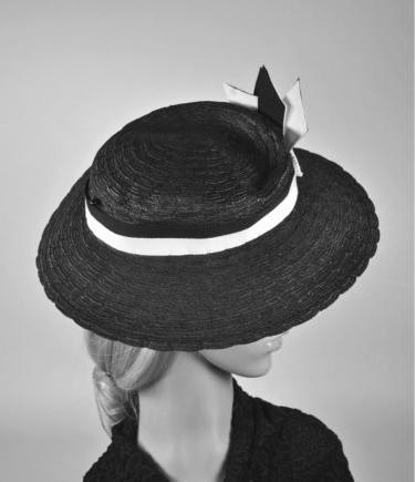 long black felt stem with brown felt tie. Approx. 22 inches.