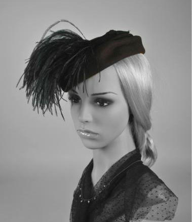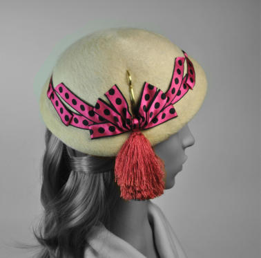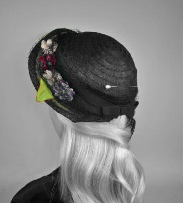 Brown and lilac felt hat with felt flowers and felt spiraled