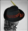 Jaunty black hat with entire upper part covered in