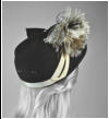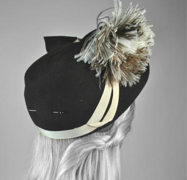 and black fancy velvet ribbon. Smallish perching hat.