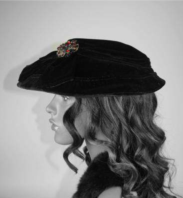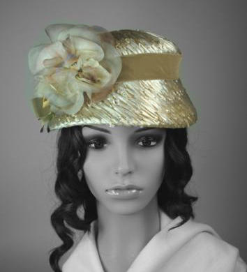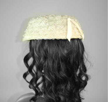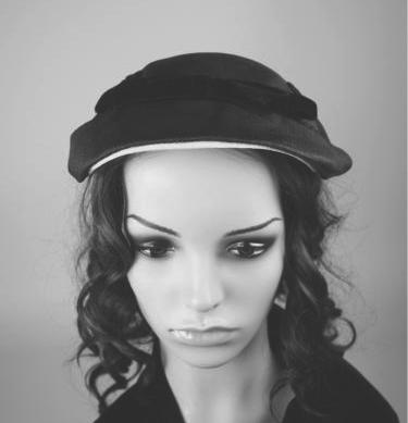 Beige straw late 50's hat with taupe velvet ribbon and a