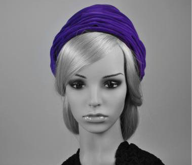 Late 50's purple velvet turban with mesh lining. Approx. 22