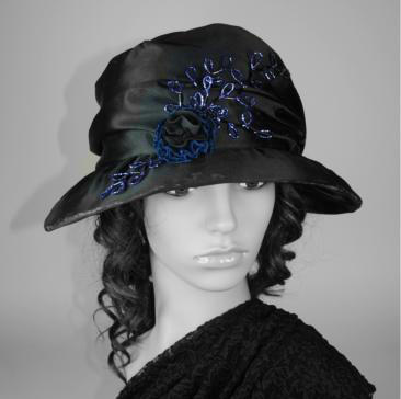 vines". Blue and black velvet rosette. Fits 24" headblock.
